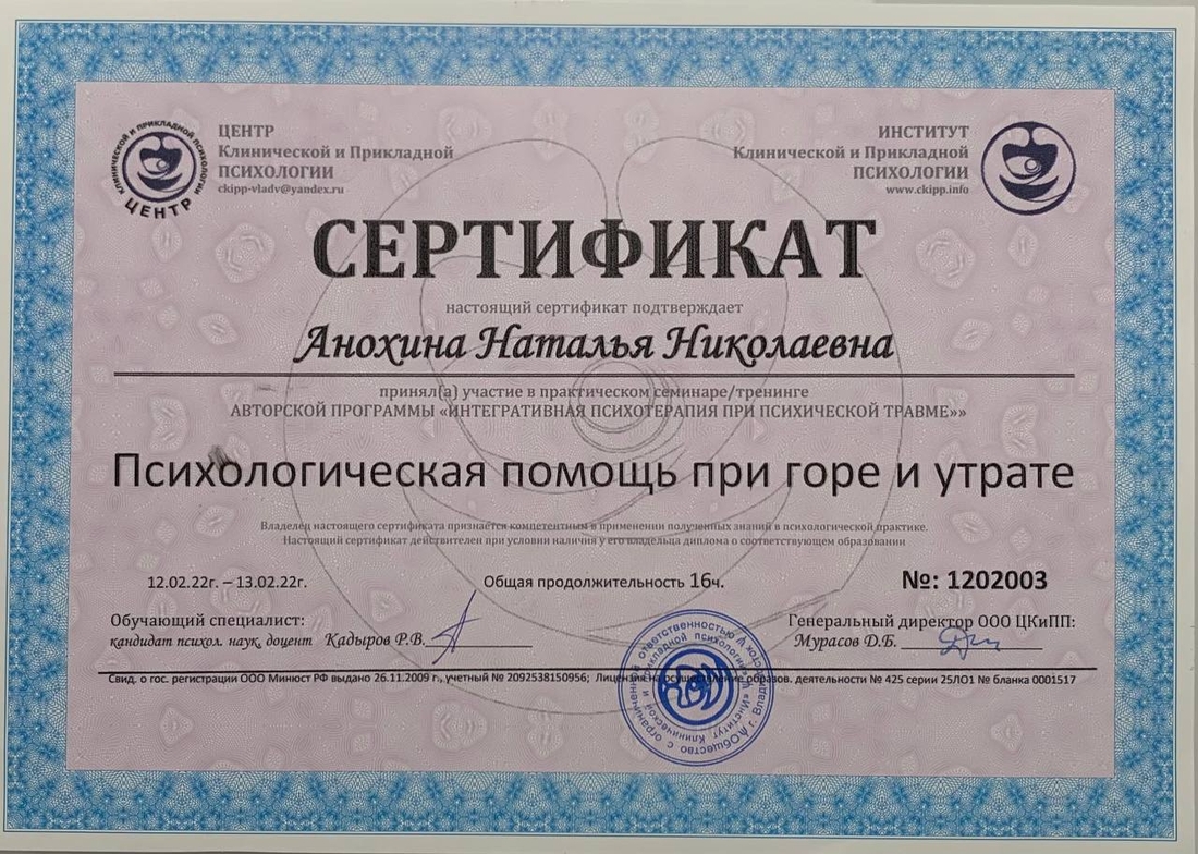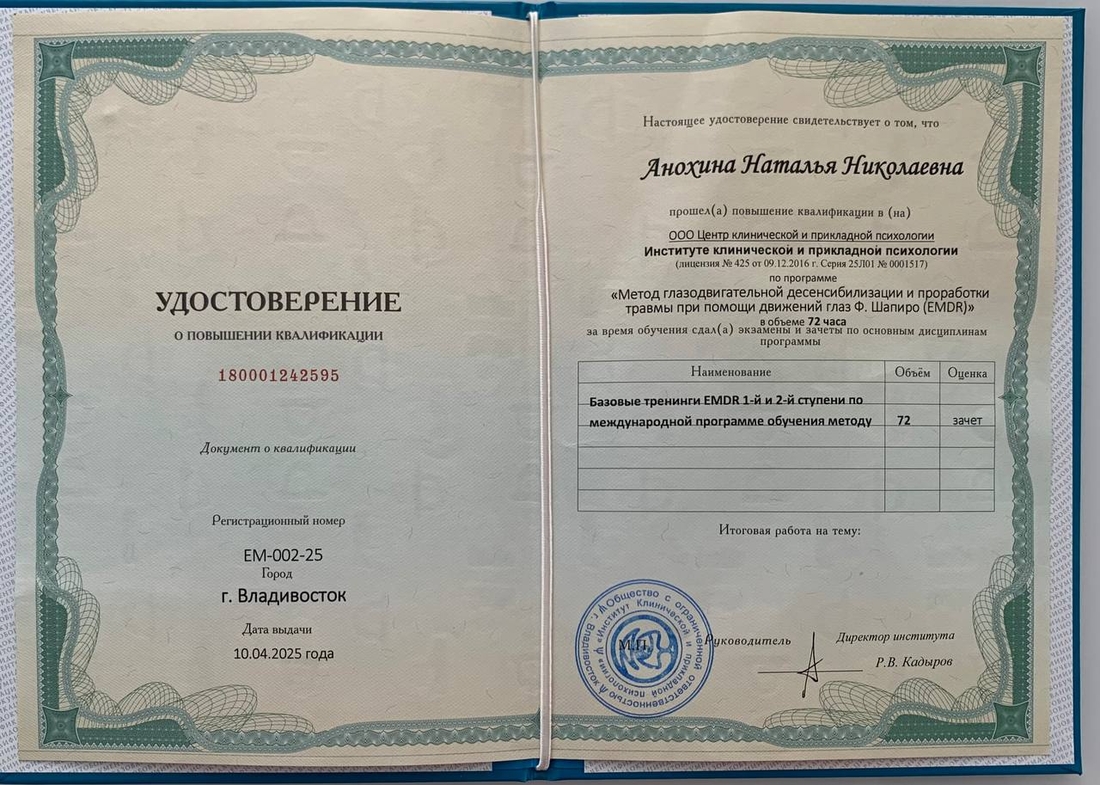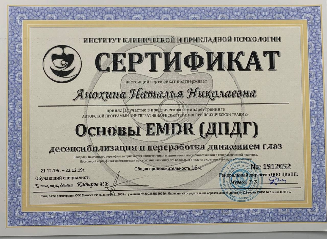 Метод EMDR. В настоящее время — это самый эффективный, научно-доказанный метод работы с психической травмой. Также метод работает практически со всеми запросами клиентов.