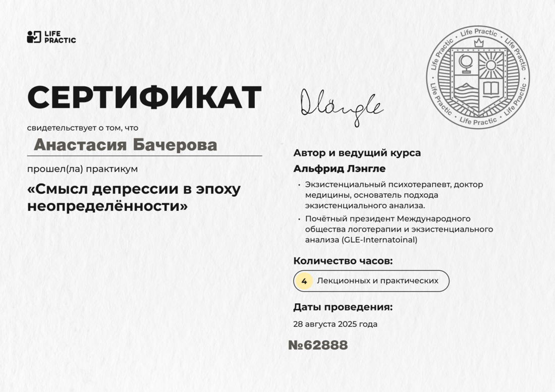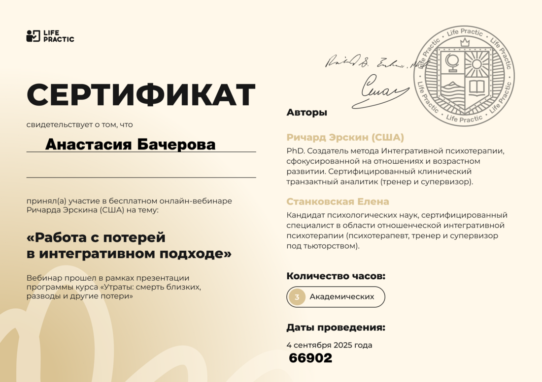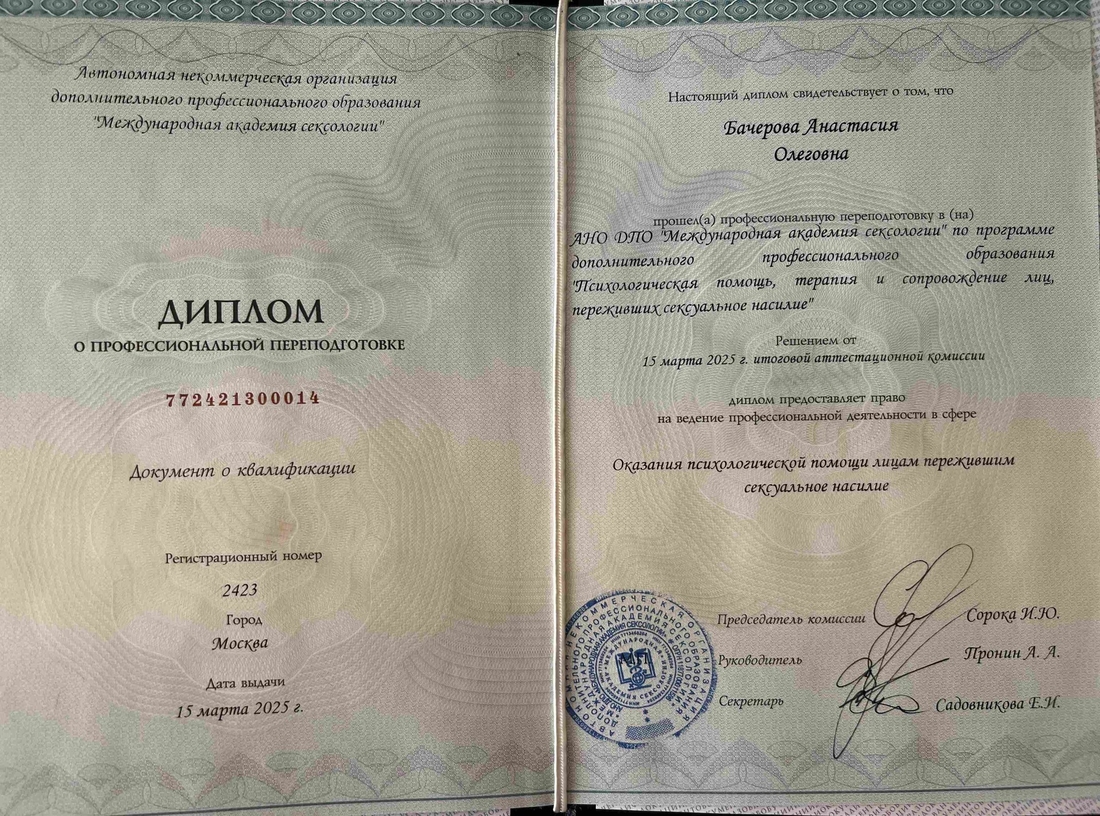 Вы не услышите от меня фразы «А теперь мы сделаем технику». Все методы я бережно интегрирую в наш живой диалог. Терапия со мной — это естественный процесс, где инструменты (арт, динамика, работа с дыханием) проявляются именно тогда, когда вы к этому готовы. Никаких шаблонов — только бережная интеграция.