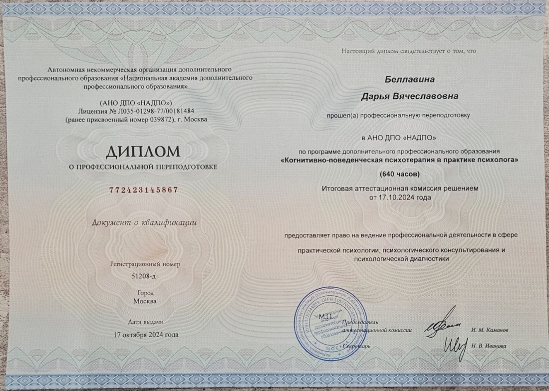 Я выбрала КПТ за её структурность, научную обоснованность и ориентированность на развитие навыков саморегуляции. Этот подход помогает не только снизить выраженность симптомов, но и научиться справляться с трудностями самостоятельно в долгосрочной перспективе.