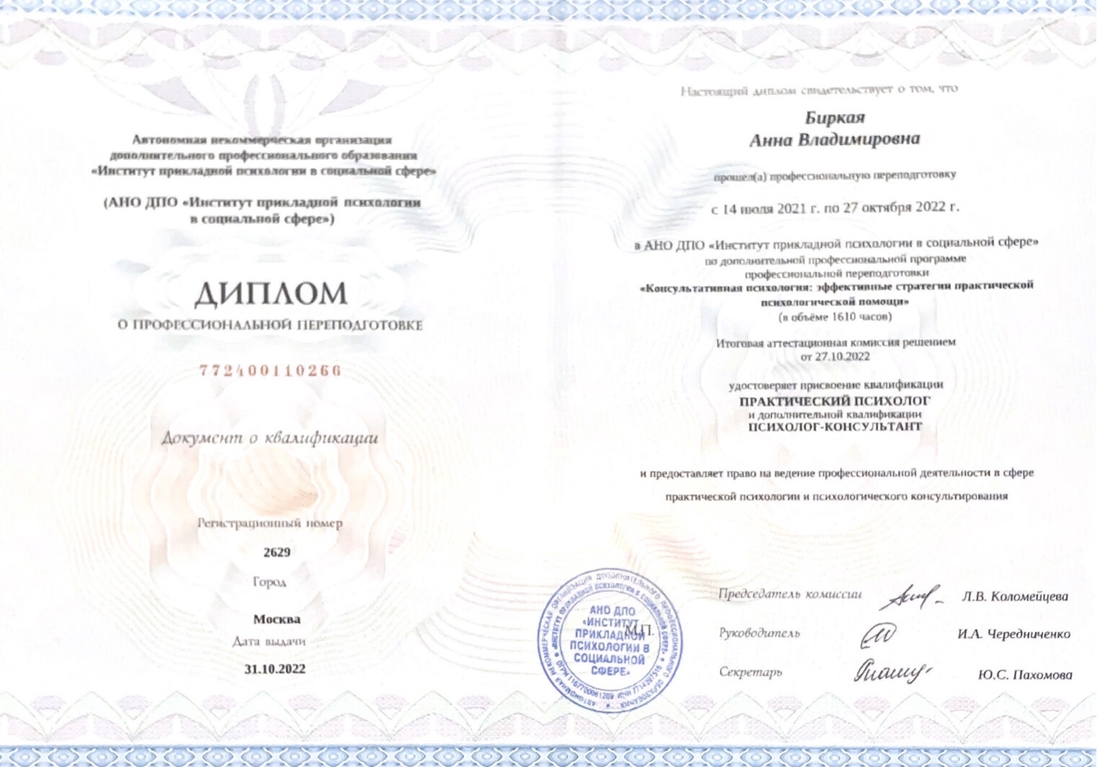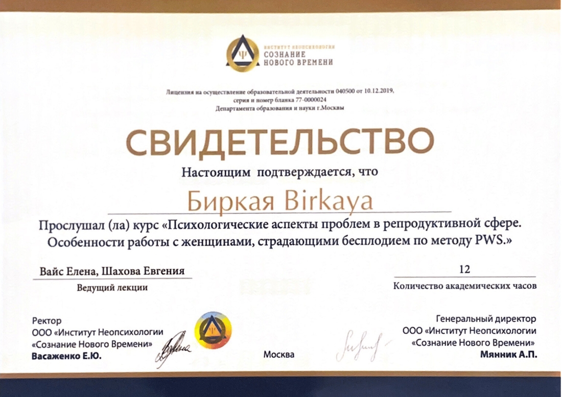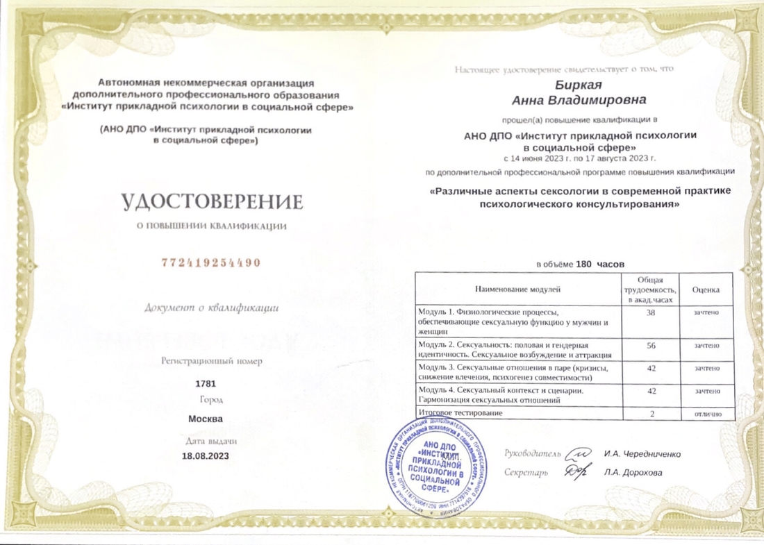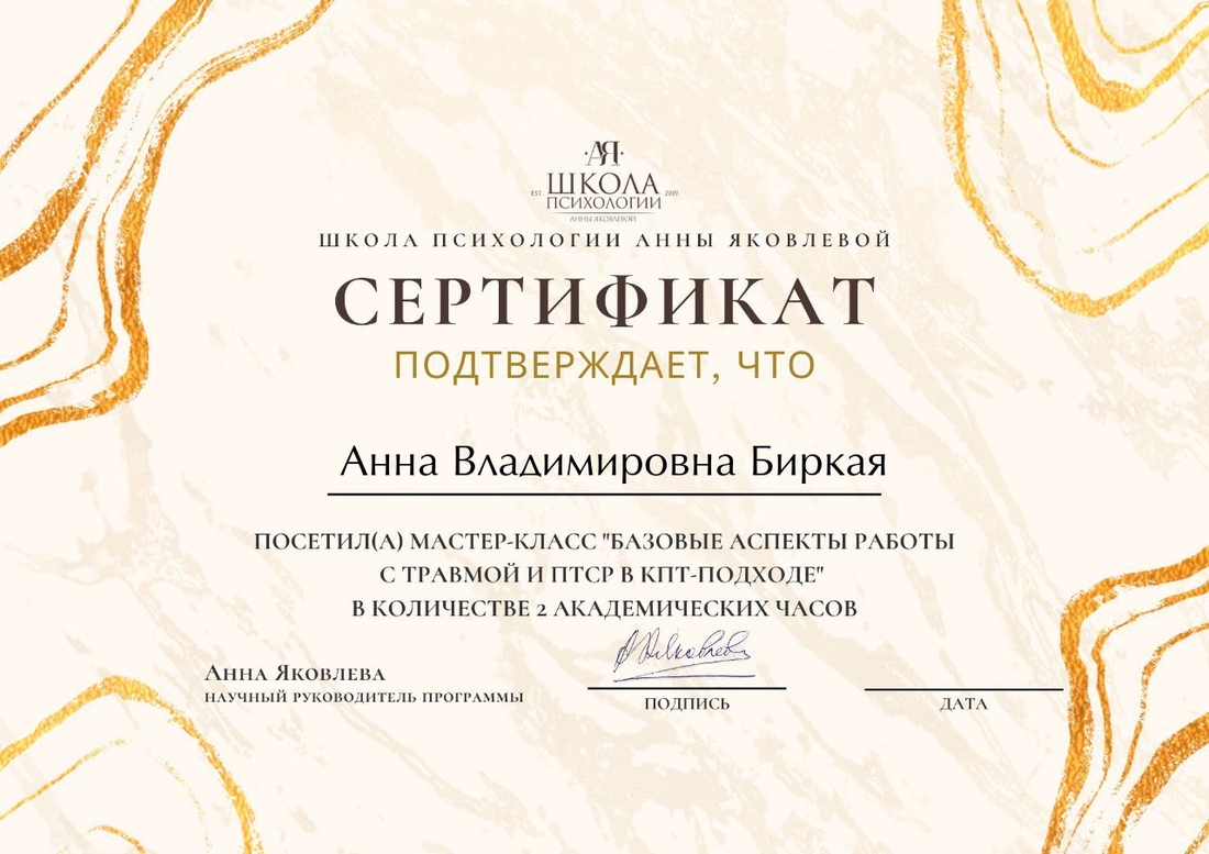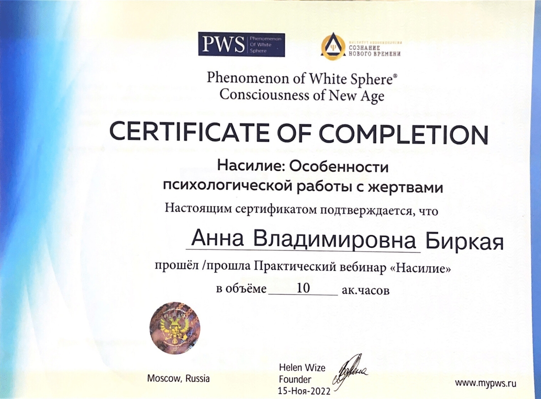 Знания из базовой психологии обновляю и расширяю на постоянной основе. Так же на себе экспериментирую с новыми подходами и техниками, появляющимися на рынке психологической помощи, дабы идти в ногу со временем и подхватывать инструменты качественно ускоряющие процесс смены мышления и работы с травмой.