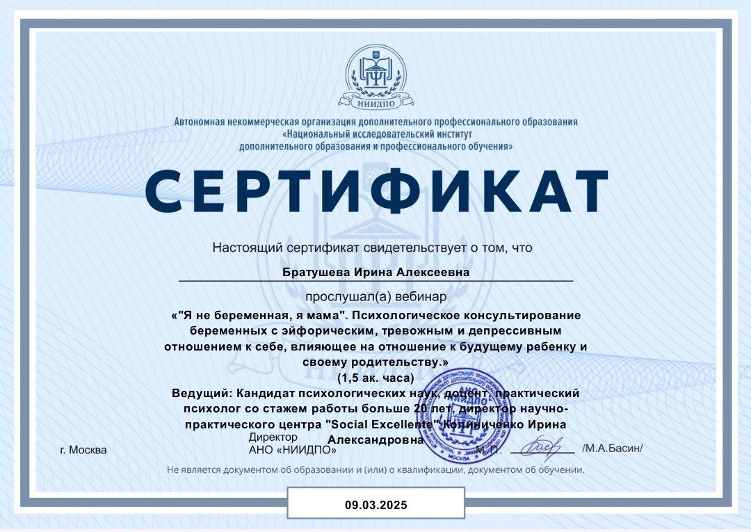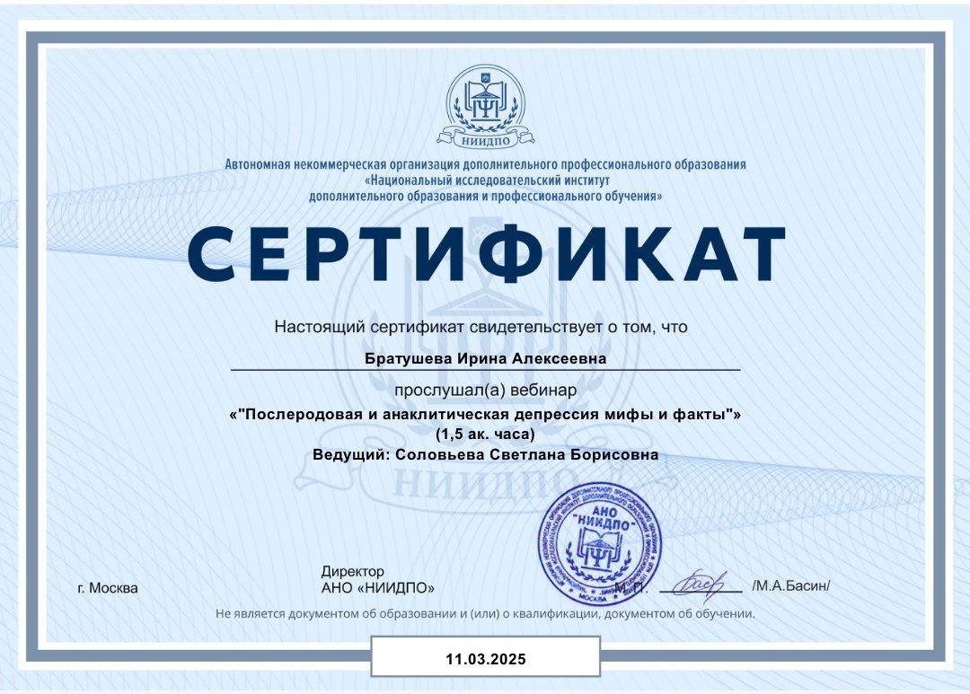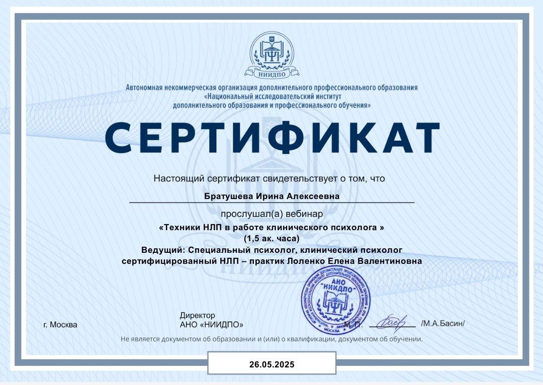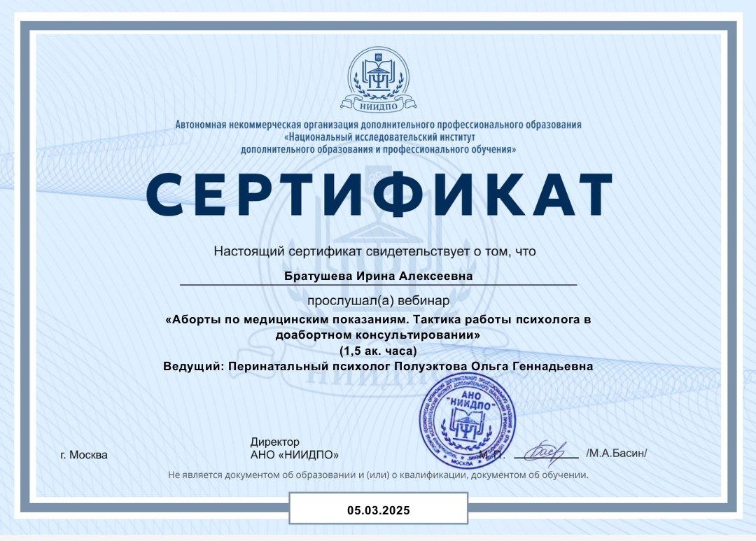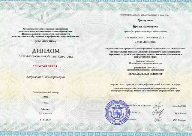 Мой путь в психологию - это осознанный выбор, основанный на богатом фундаменте знаний и личном опыте. Начав с изучения основ психологии в рамках высшего спортивного образования, я углубила свою экспертизу, получив дипломы практического и перинатального психолога.