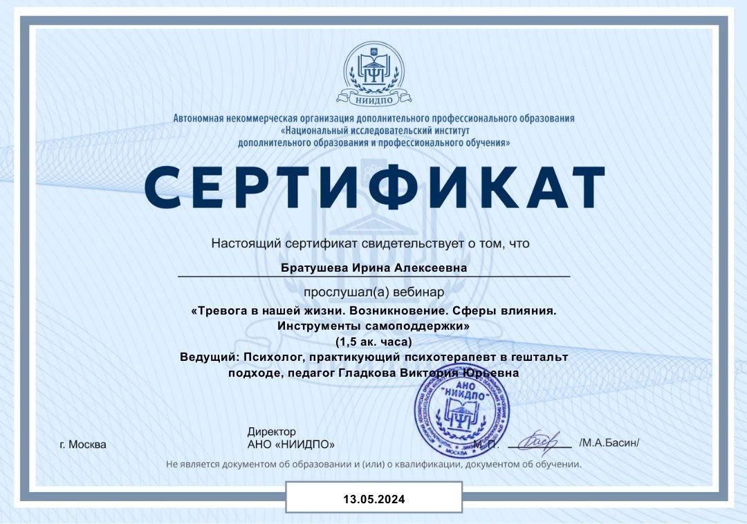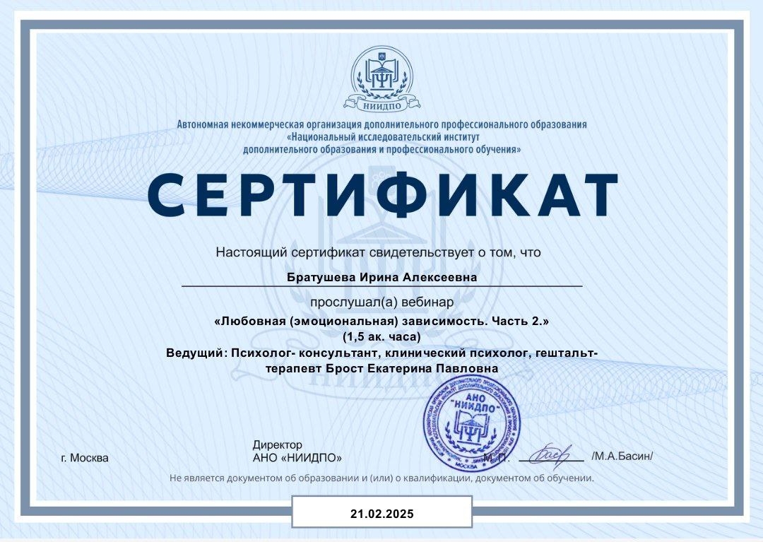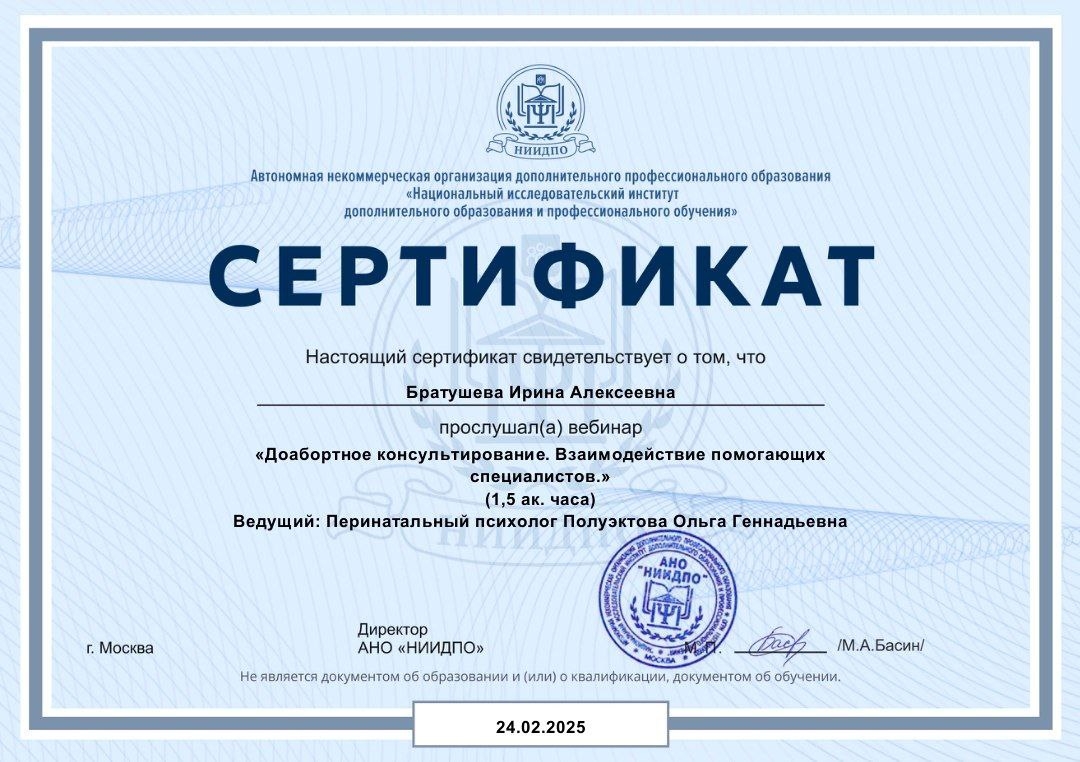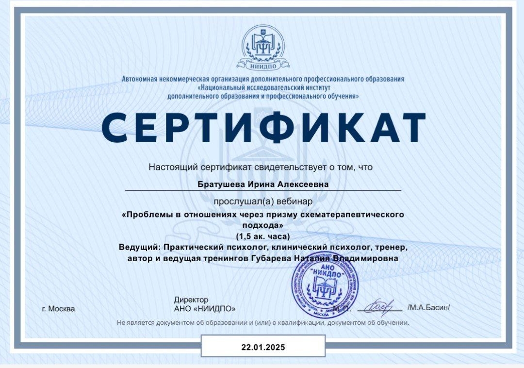 Мой путь в психологию - это осознанный выбор, основанный на богатом фундаменте знаний и личном опыте. Начав с изучения основ психологии в рамках высшего спортивного образования, я углубила свою экспертизу, получив дипломы практического и перинатального психолога.