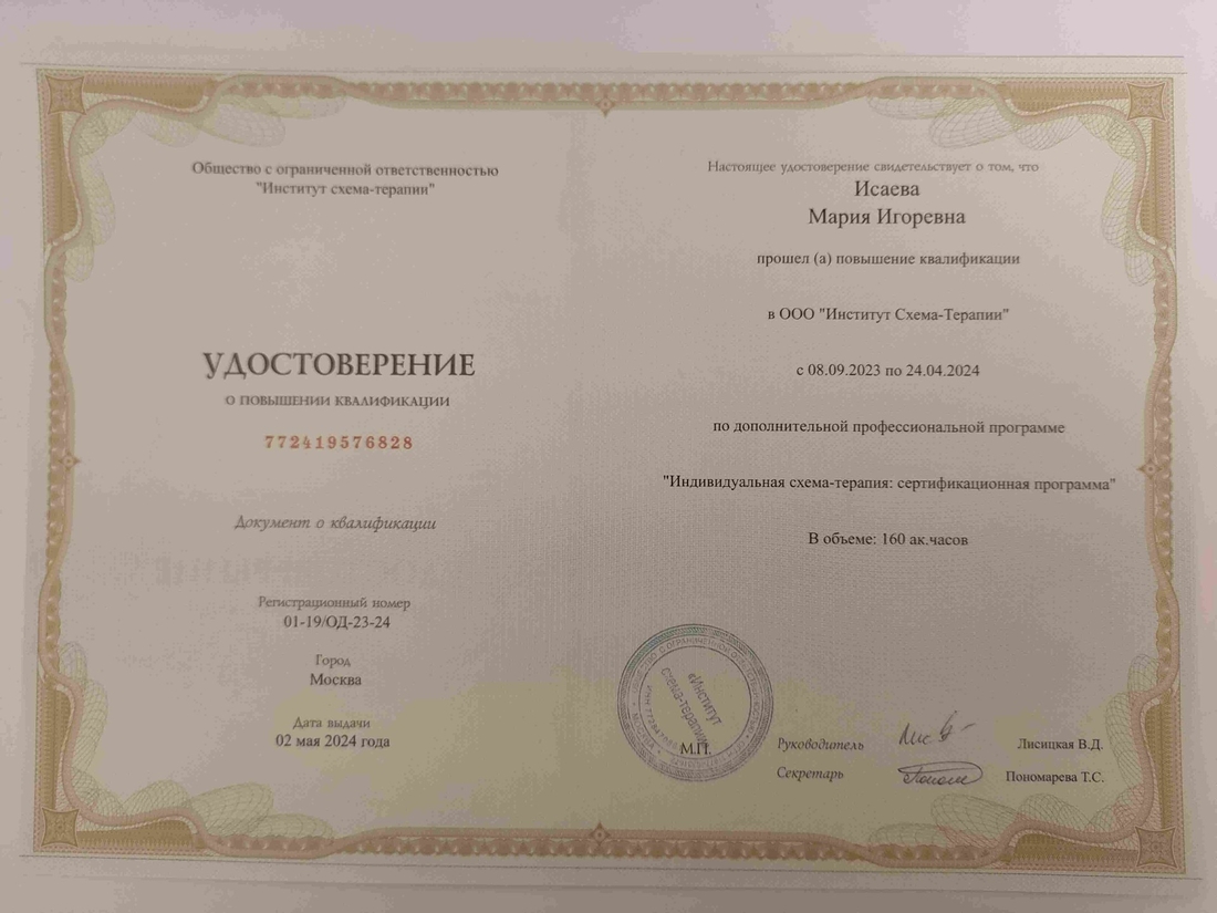 Меня зовут Мария Исаева, я клинический психолог.
