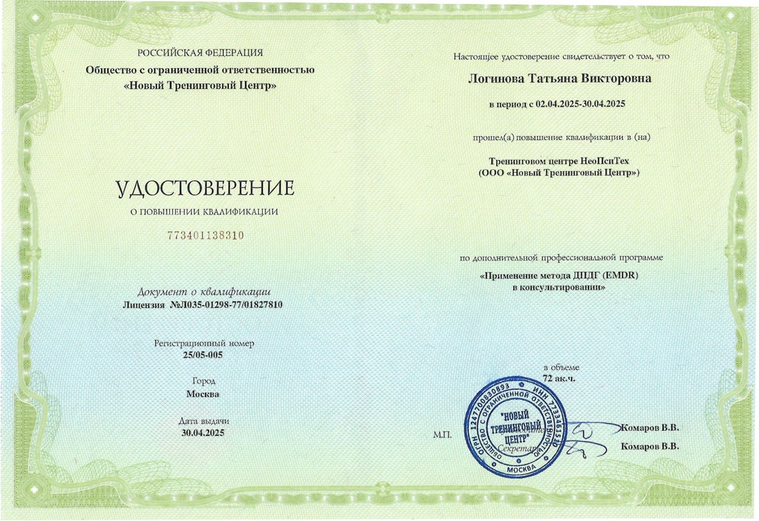 Моя работа — это мой осознанный выбор и источник счастья. Для меня нет большей награды, чем видеть, как у клиента появляются силы, ясность и энергия менять свою жизнь к лучшему.