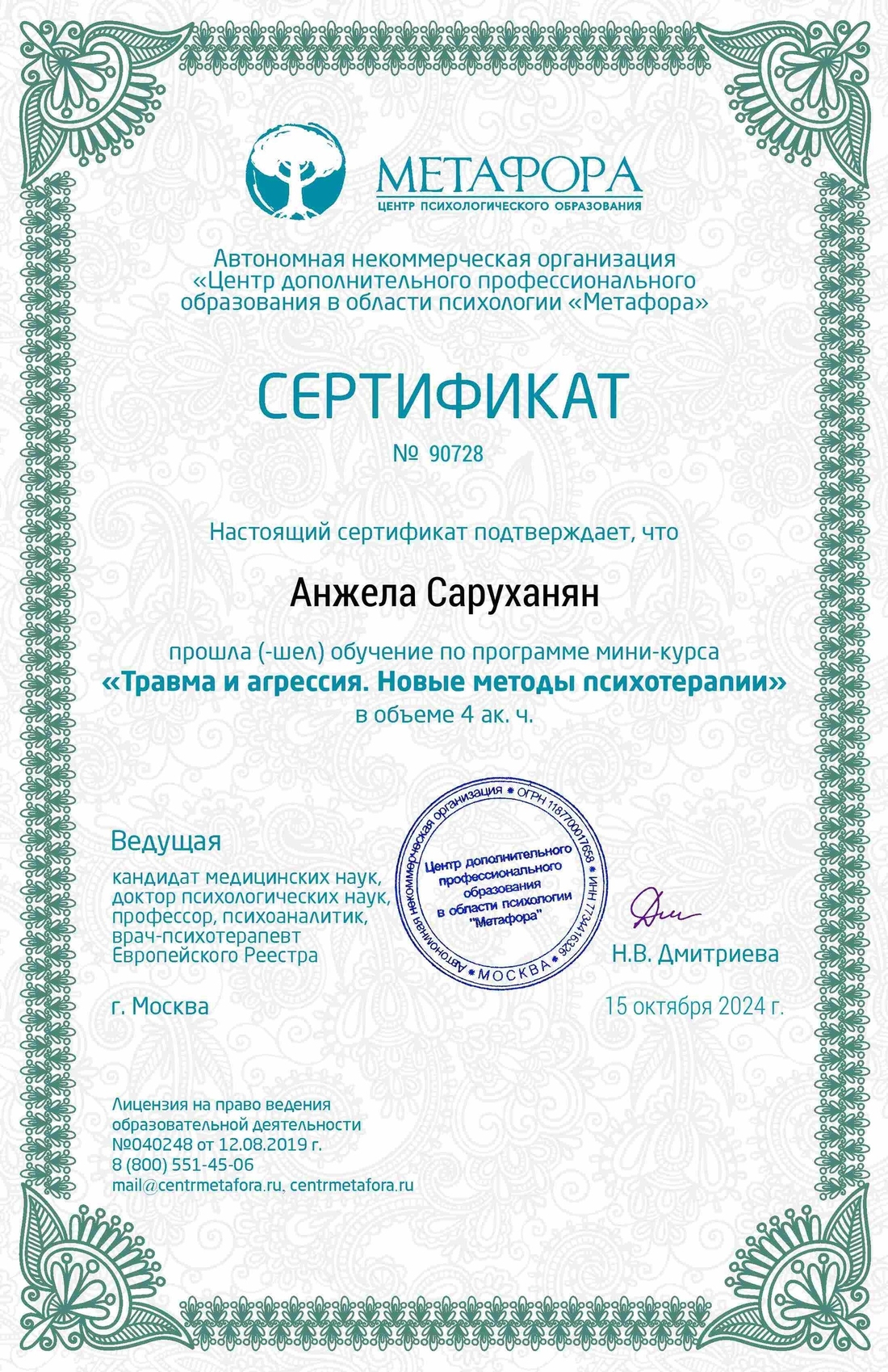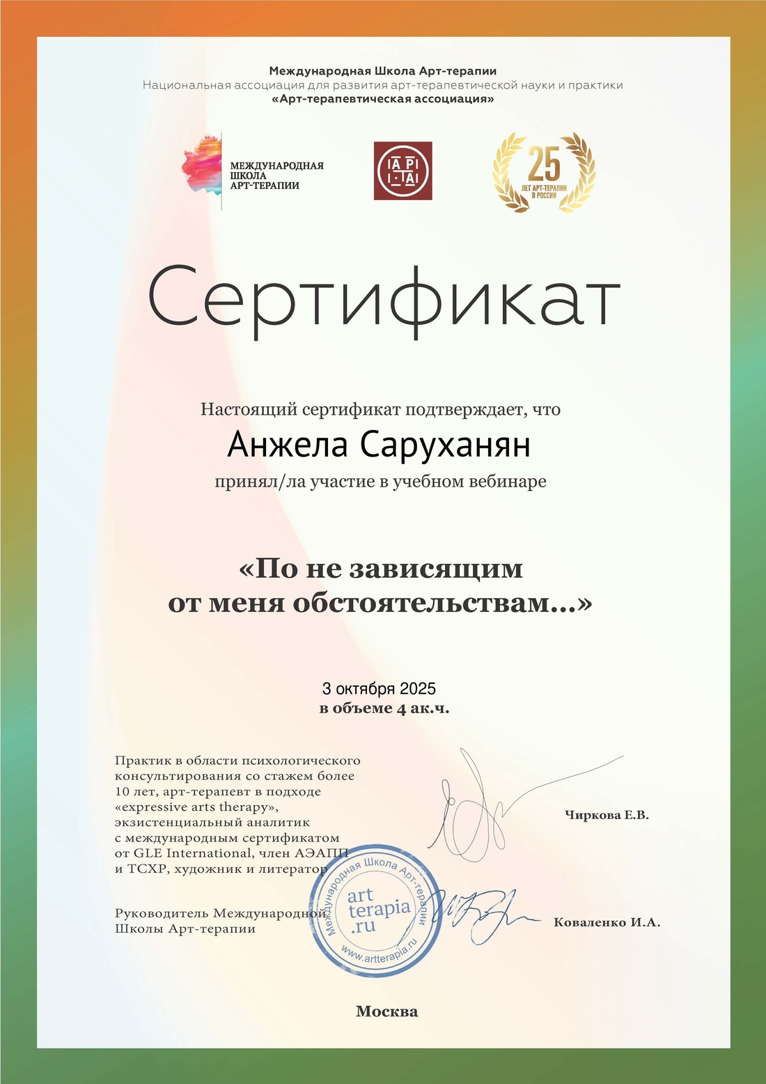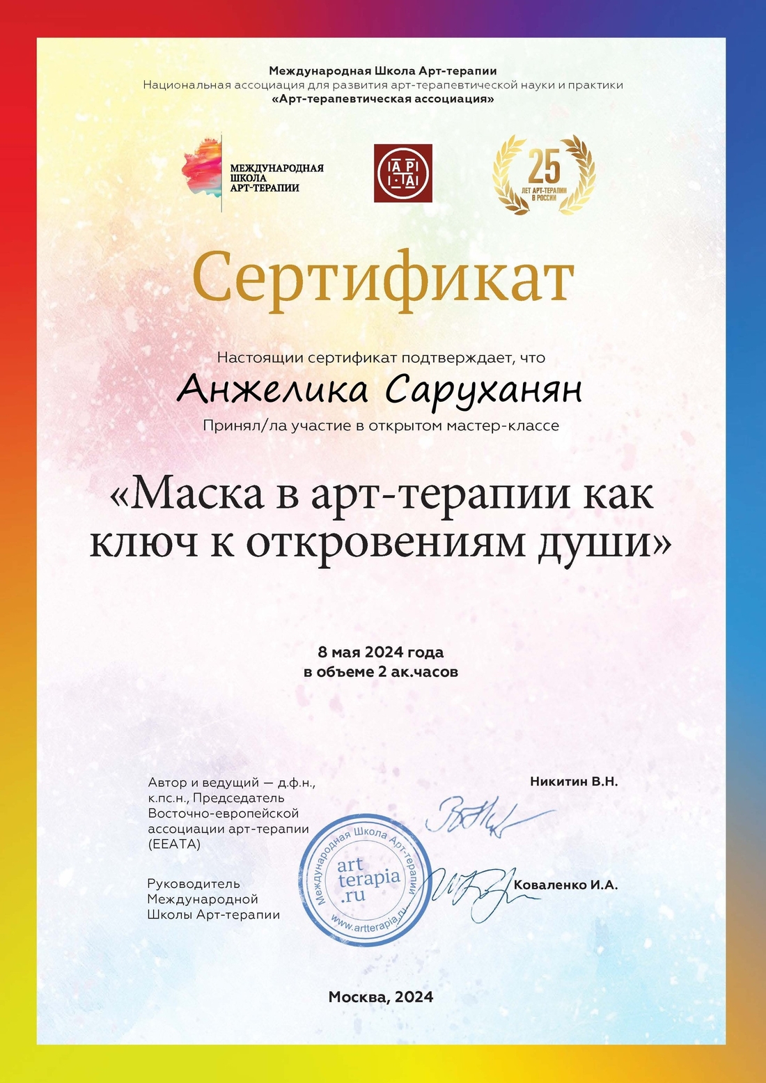 Я постоянно обучаюсь , чтобы быть в курсе новейших исследований и методов в психологии. Я знаю, что у каждого человека есть потенциал для изменений, и моя задача - помочь раскрыть этот потенциал.