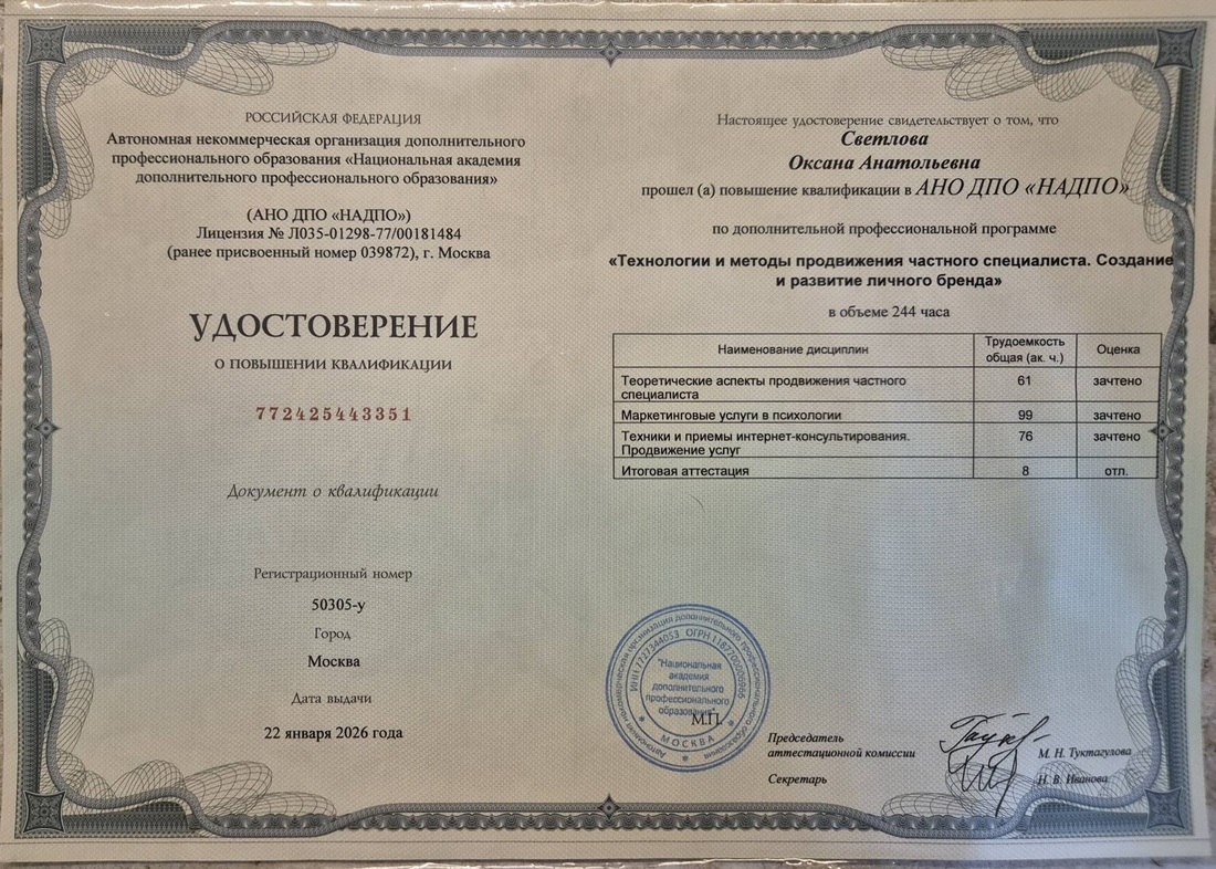 Прежде чем менять жизнь, нужно понять, где вы находитесь. Через психологию и методы самопознания мы вместе с вами убираем «туман» и вы получаете четкую картину реальности. Вы видите, куда идти, а не просто бьетесь в закрытую дверь.