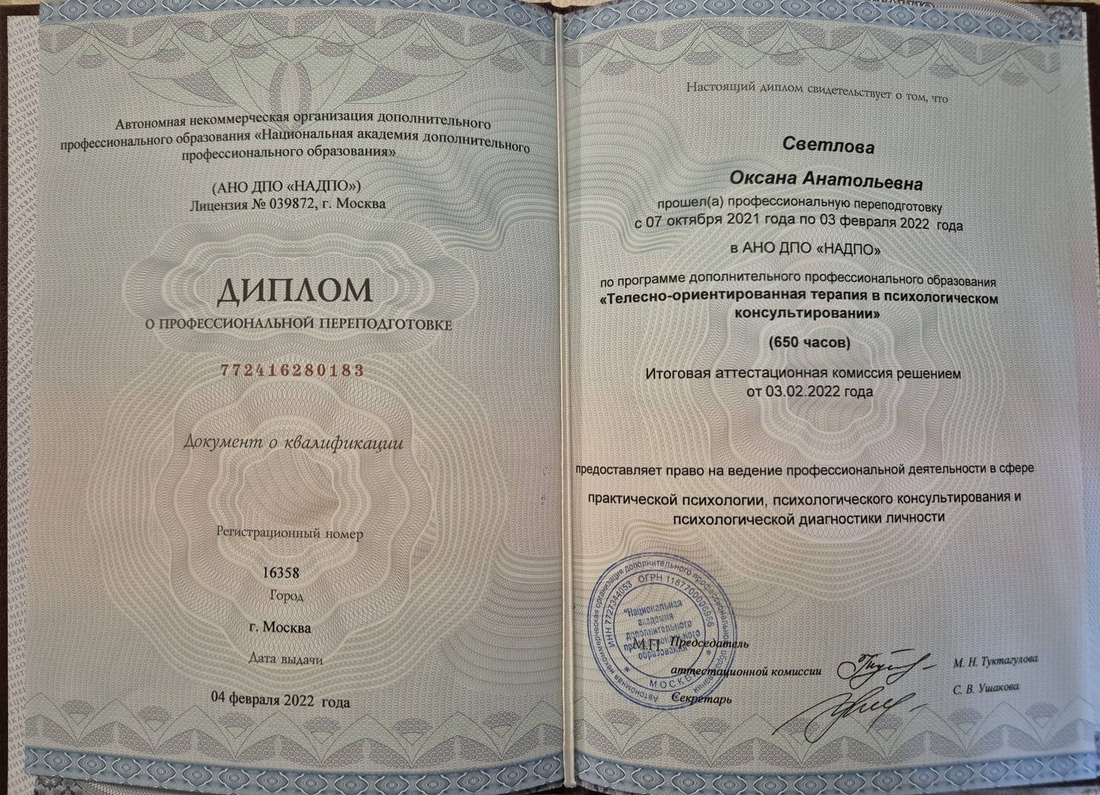 Мое первое образование - преподаватель математики, поэтому я могу четко структурировать хаос в твоей голове и разложить все по полочкам. Я работаю с подсознанием через ЭОТ и ДПДГ - и вижу как это даёт реальные результаты, как навязанные установки уходят и человек начинает жить свою реальность. В моем подходе я также использую сочетание различных телесных техник, которые образуют мою авторскую методику: антистрессовая терапия - направленная на снятие зажимов и скованности с мышц и устранения блоков с подсознания. Через энерготерапию помогаю соединить тело и сознание, таким образом помогаю найти связь с самим собой.