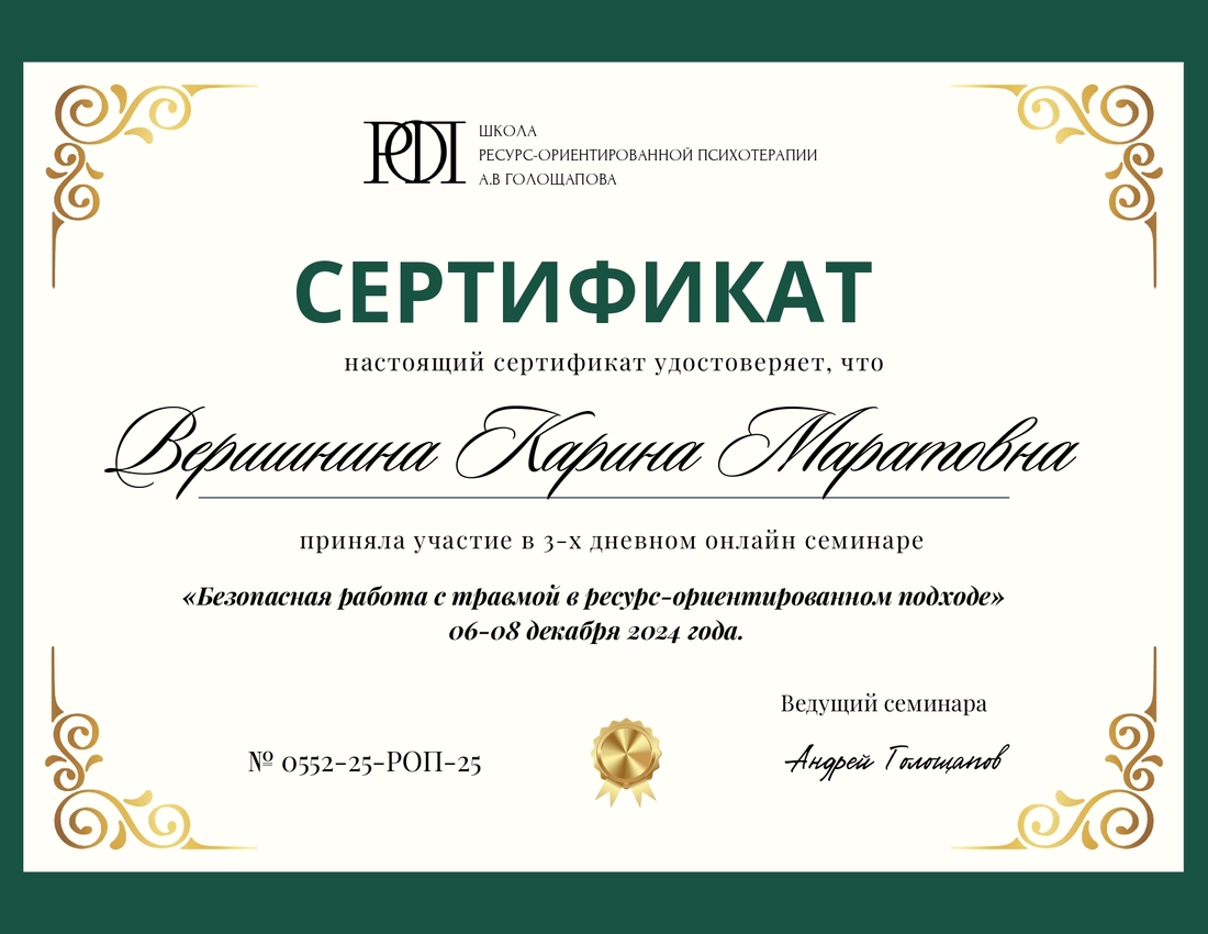 Я работаю в интегративном подходе. Это значит: ваша терапия будет исключительно индивидуальной, построенной на уважении к вашему опыту и научной основе. Я не применяю шаблоны, а осознанно подбираю методы, подходящие именно Вам.
